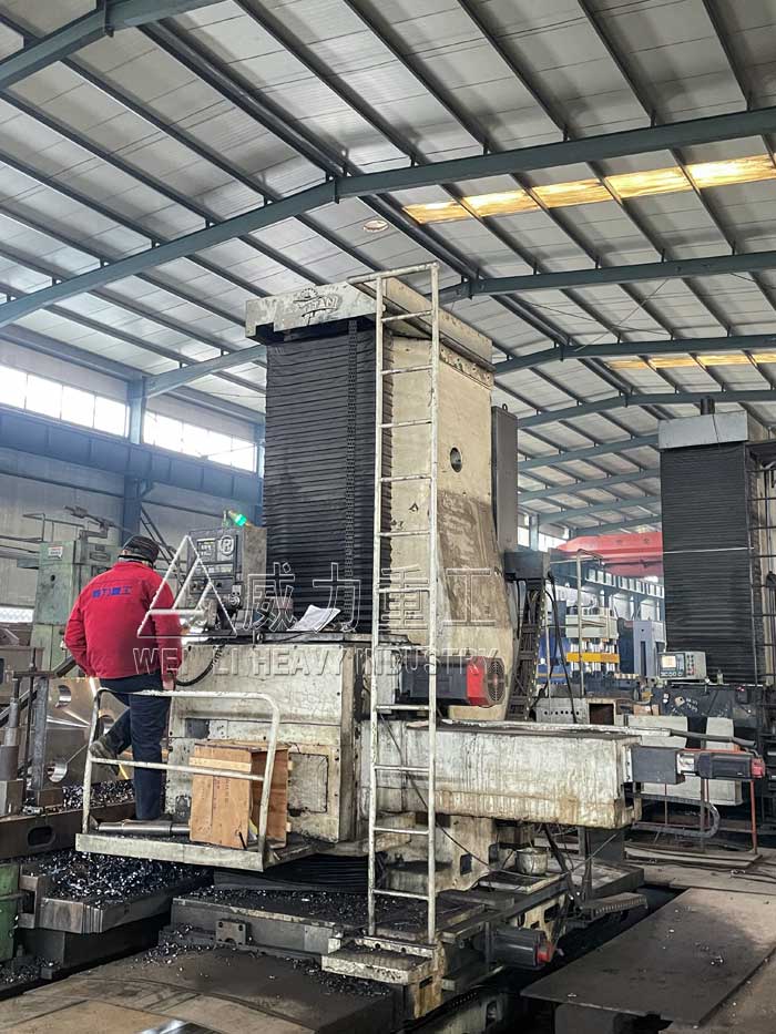 山東威力重工機床有限公司滕州分公司生產液壓機廠家,擁有大型液壓機、四柱液壓機加工設備。圖為公司生產加工大噸位液壓機特別配備的航車。公司可定做100——5000噸液壓機。歡迎各地朋友到我公司實地考察訂購。